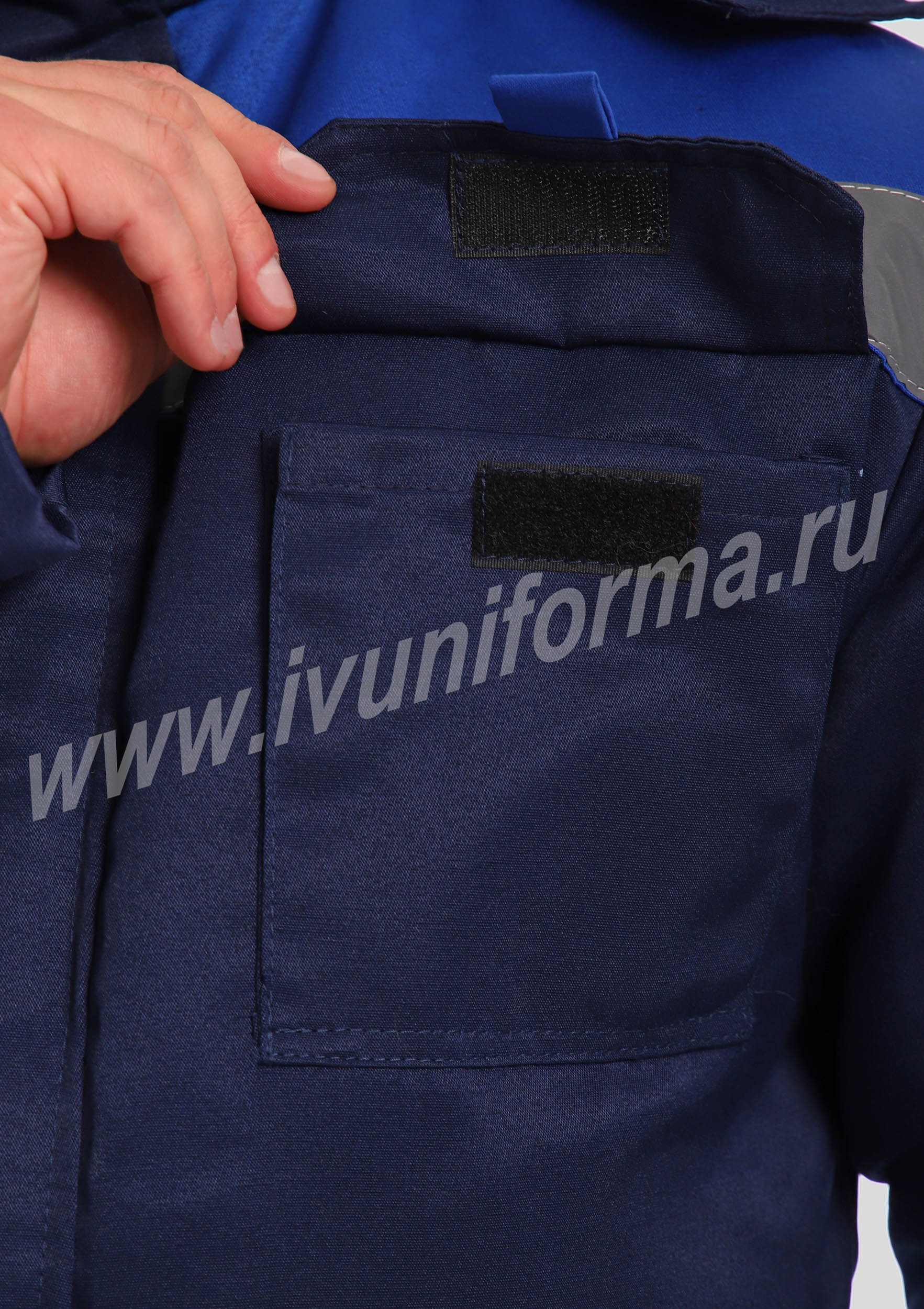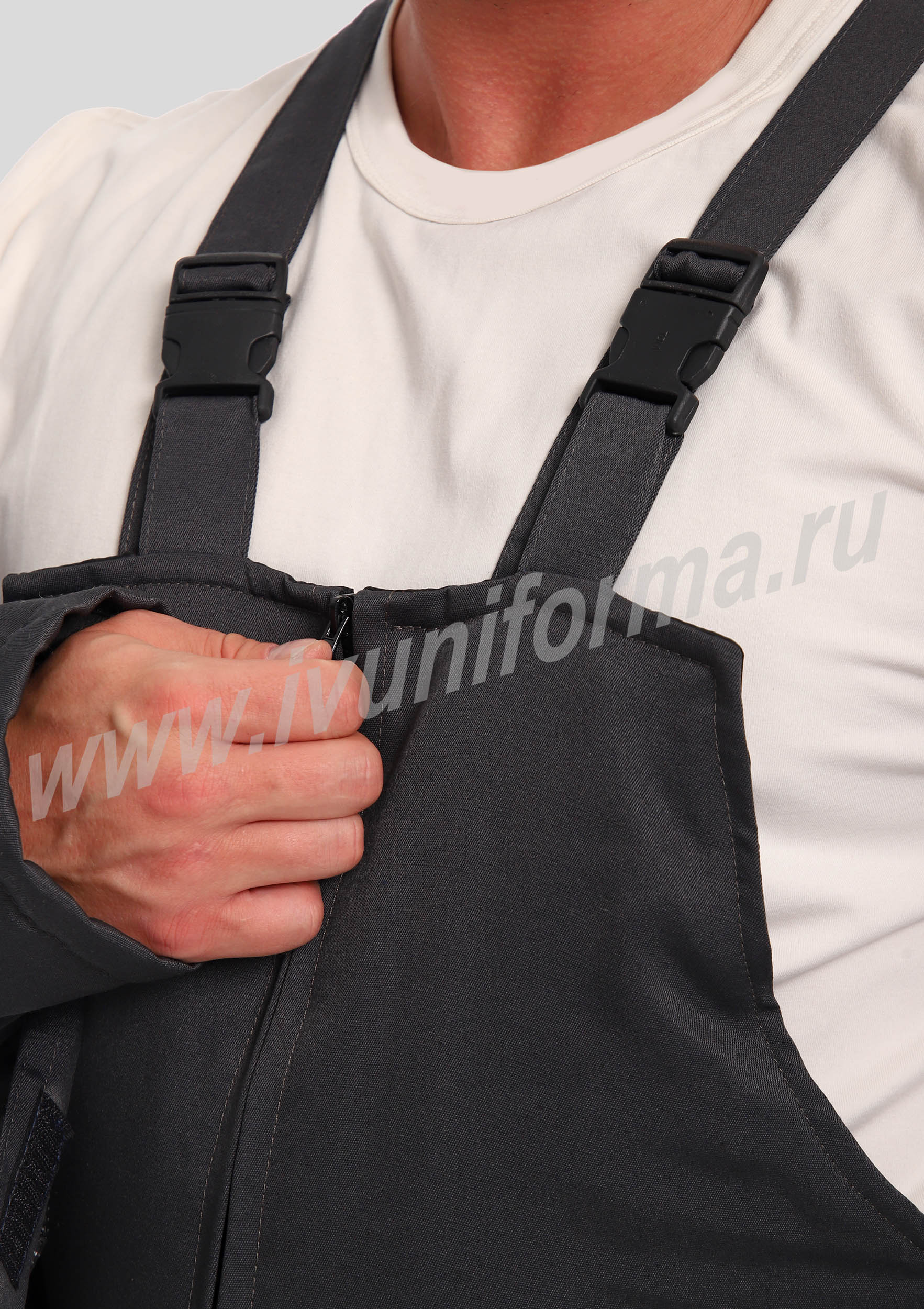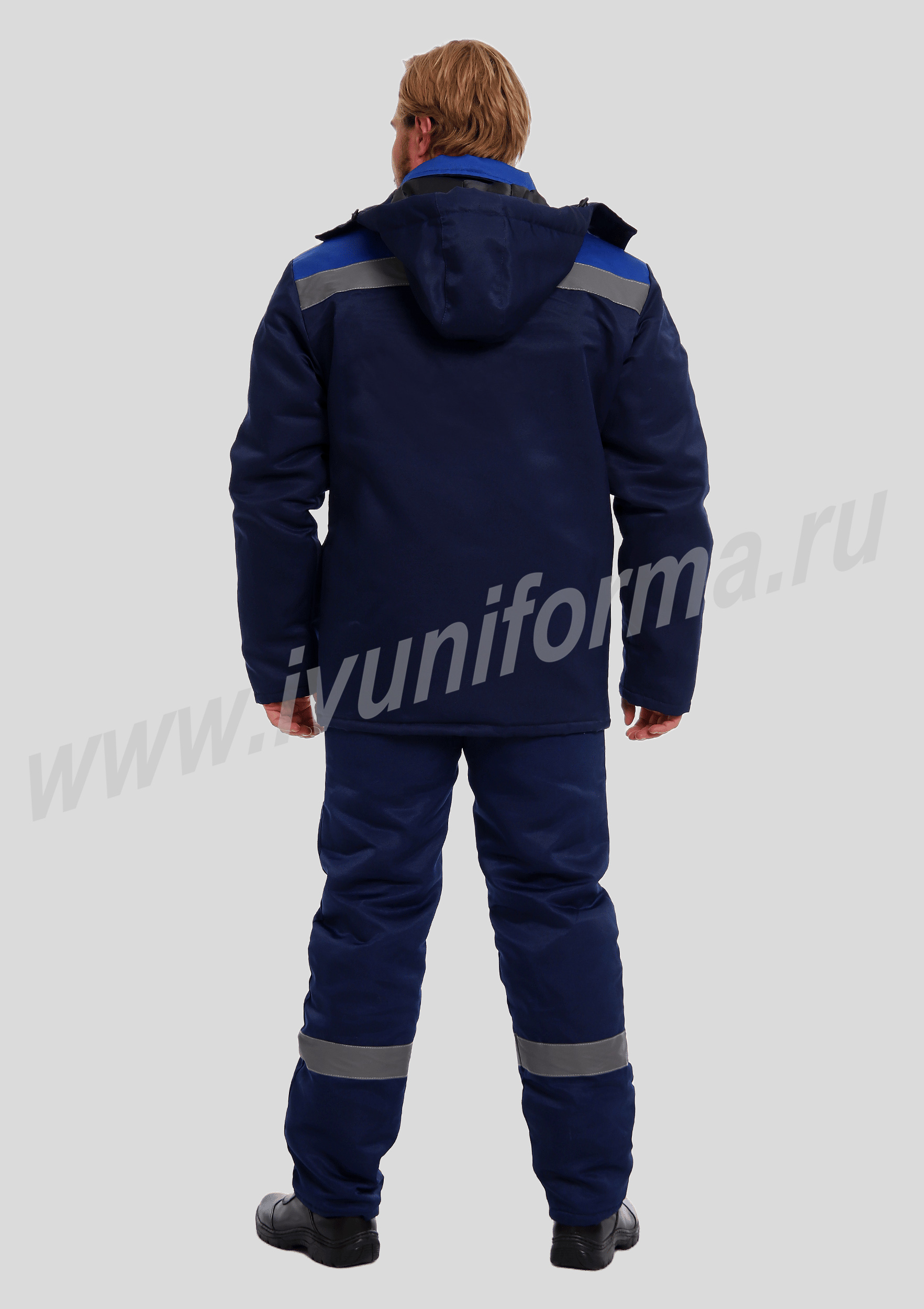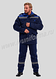 Костюм рабочий утепленный мужской состоит из куртки и полукомбинезона. Куртка удлиненная с воротником стойкой, прямого силуэта с застежкой на тракторную молнию с ветрозащитным клапаном на липучках "Velcro". На куртке два нагрудных и два нижних накладных кармана с клапанами и застежками на липучку "Velcro". Капюшон съёмный, на молнии ,с возможностью регулировки объема по лицевой части. Полукомбинезон прямого силуэта, с застежкой на две пуговицы и молнию. На брюках два передних кармана с косой линией входа. Однослойное утепление брюк объемом 200 гр/кв.м.